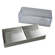 Коробочка біла для 2 мусових тістечок зі вставкою-роздільником. Кришка пластикова. Можна використовувати без вставки. Розмір комірки 8,5х8,5х2 см.
